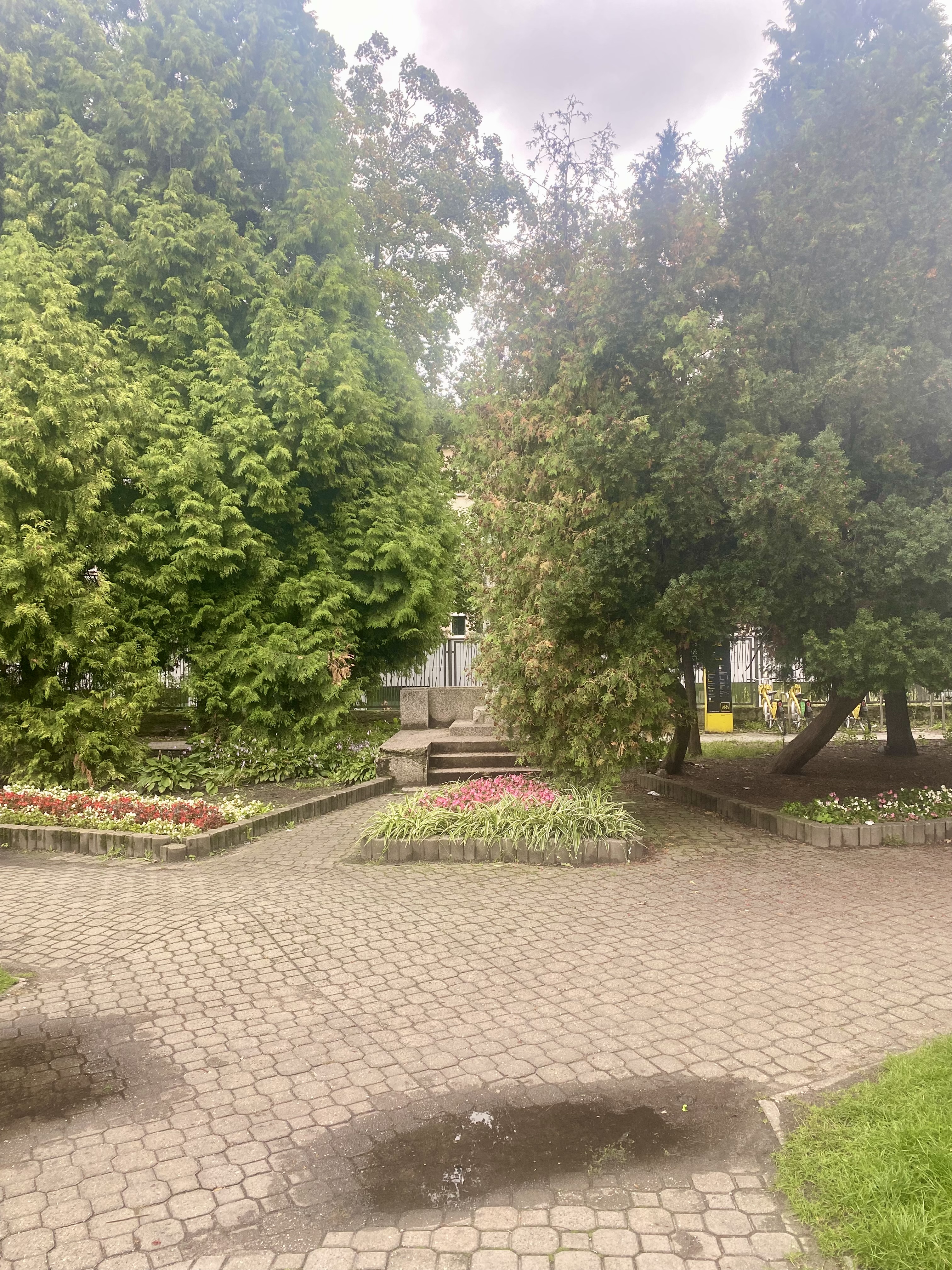 Niestety pomnik jest mocno przysłonięty przez krzewy i drzewa rosnące wokół niego. Dodatkowo jedna z ławek wymaga naprawy, a sam skwer i jego alejki posprzątania. Zdjęcia w załączaniu.